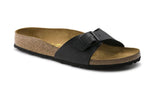 A strap, a buckle and a contoured cork footbed are simply, but skillfully, combined to create the original BIRKENSTOCK sandal - the Madrid. The upper is made from the skin-friendly, hard-wearing synthetic material Birko-Flor.