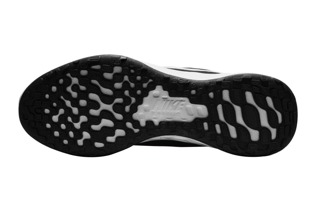 A foam midsole delivers a softer ride than the Revolution 5. The outsole has a computer-generated design that creates a natural piston effect as you run, providing more cushioning and flexibility. They combine for durable traction.