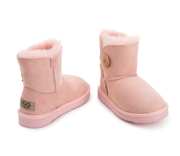 Outback Ugg Boots Kids Button - Premium Double Face Sheepskin - Pink - 26 EU