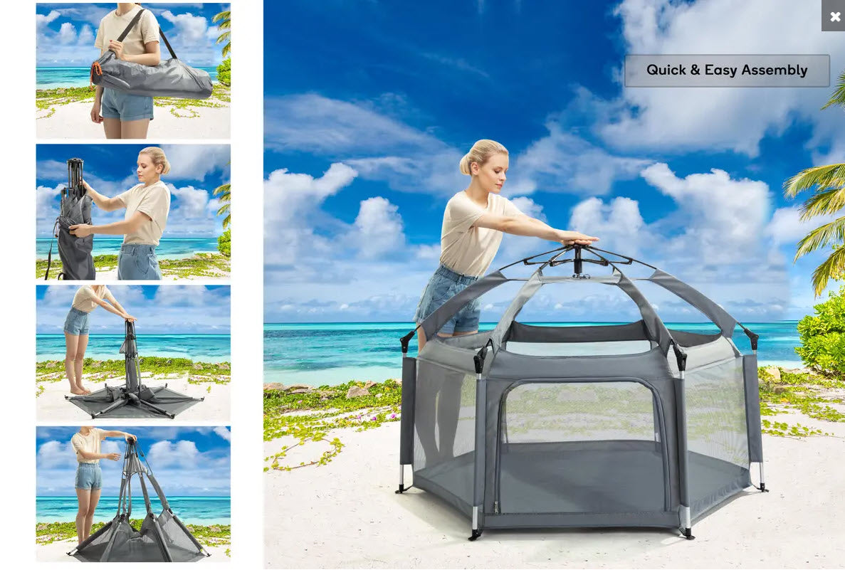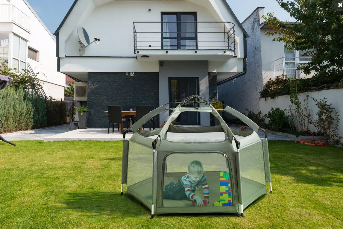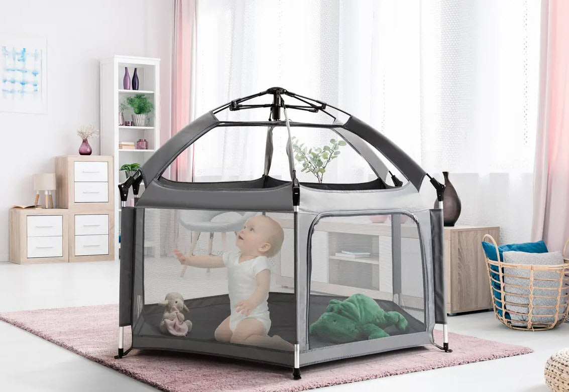 - Instant pop-up playpen anytime, anywhere