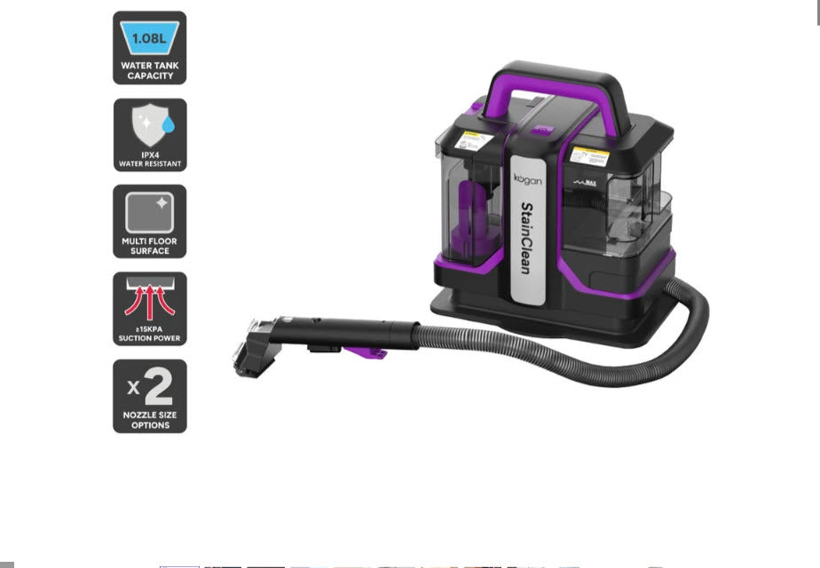 Effortlessly handle quick clean-ups with the portable and powerful Kogan™ StainClean Carpet and Upholstery Spot Cleaner, ensuring your carpets and upholstery look wonderfully refreshed and revitalised.