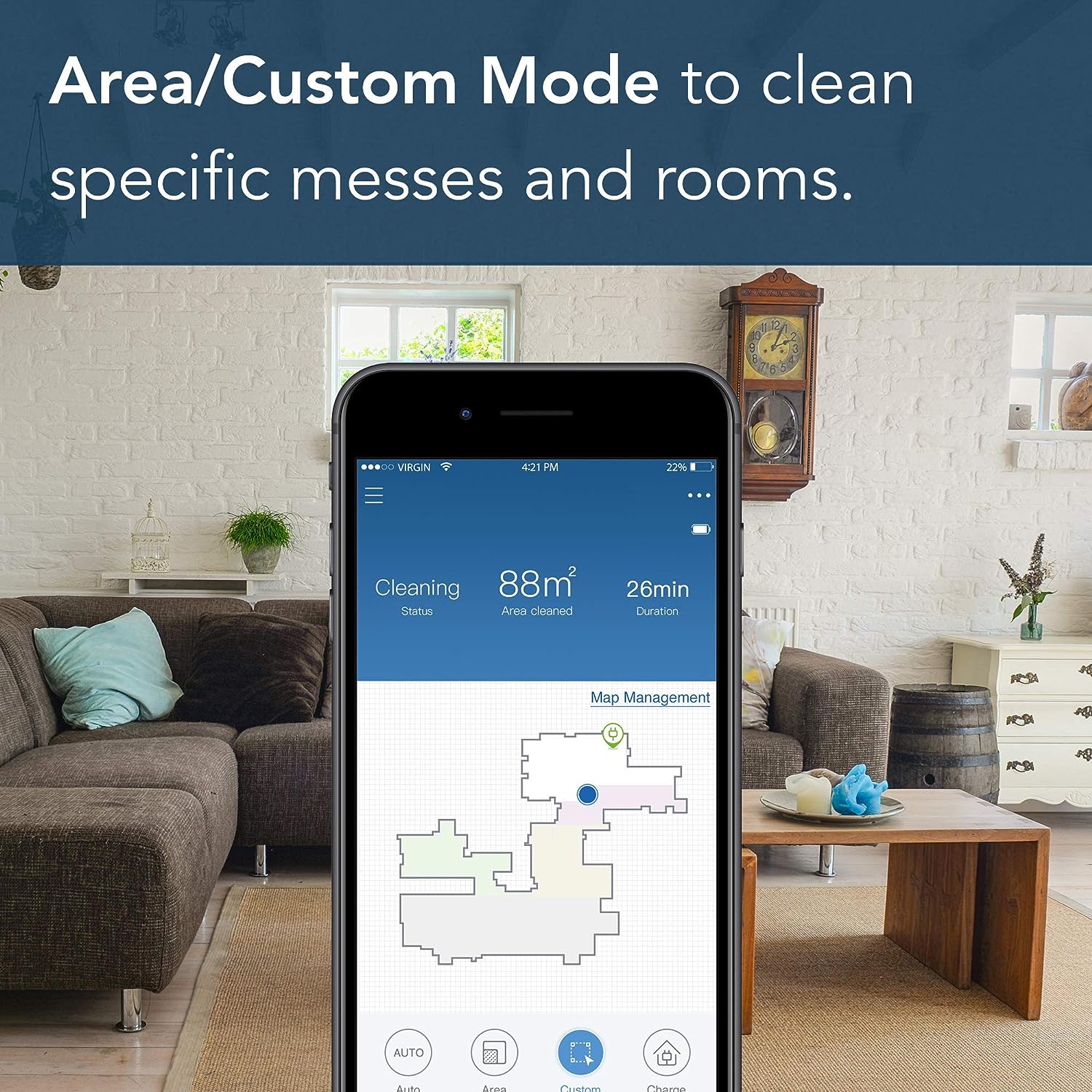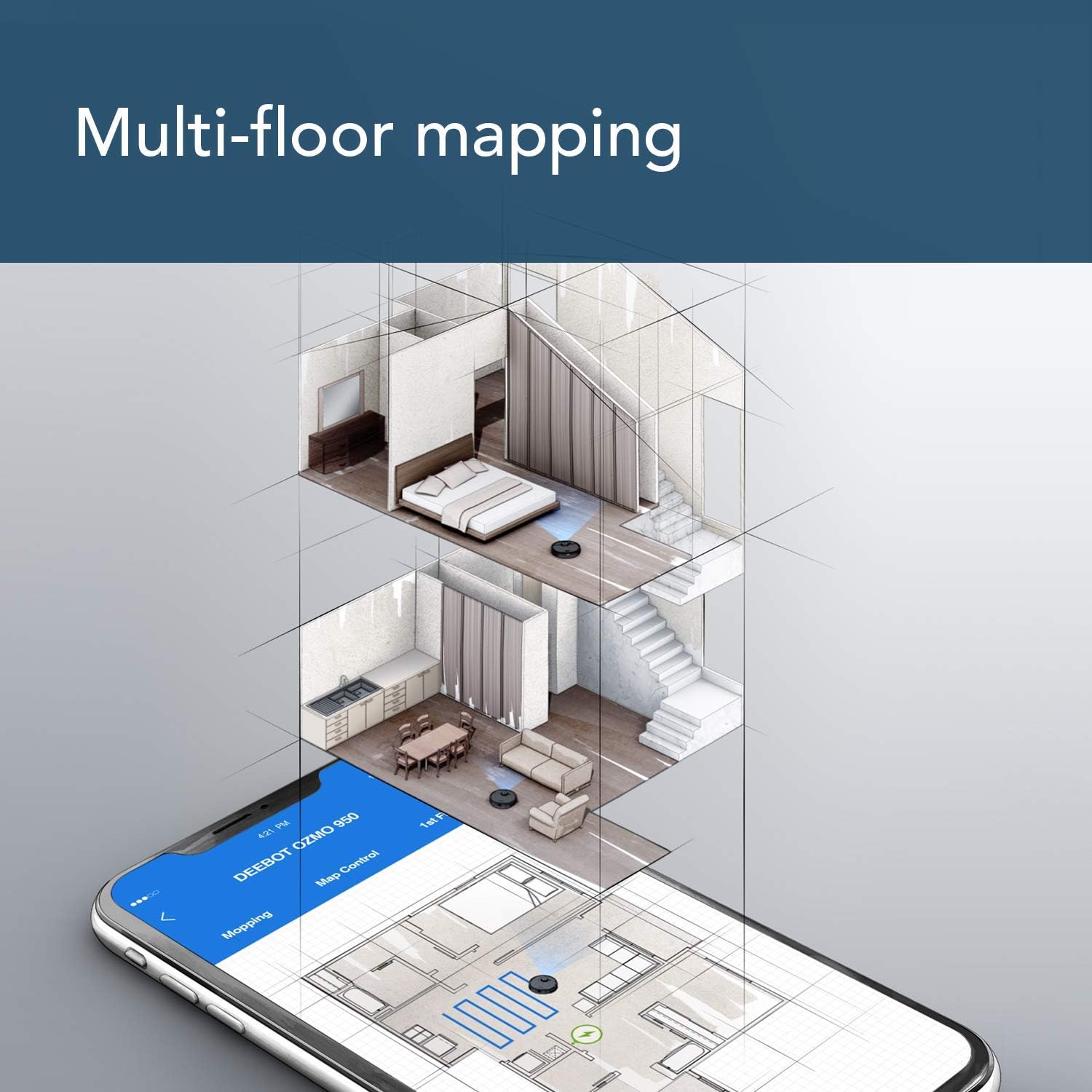 The ECOVACS DEEBOT OZMO 950 2-in-1 vacuuming and mopping robot operates for up to 3 hours on a single charge and is the most powerful DEEBOT ever. With 3 levels of suction power (normal, Max, and Max plus), the DEEBOT OZMO 950 sets a new standard for everyday cleaning. Smart Navi 3.0 enables your DEEBOT to efficiently clean and map your space to your smartphone, while multi-floor mapping can save up to 3 different maps, ideal for multiple floors or cleaning spaces. Within the ECOVACS Home App, you can create unlimited virtual boundaries and area/custom zones to clean specific areas while avoiding others. The OZMO mopping system gives you the ability to control the water flow to the mopping pad through the app. The carpet detection feature automatically boosts suction power on carpets and avoid carpets while mopping.