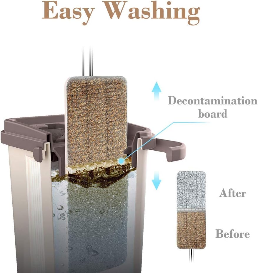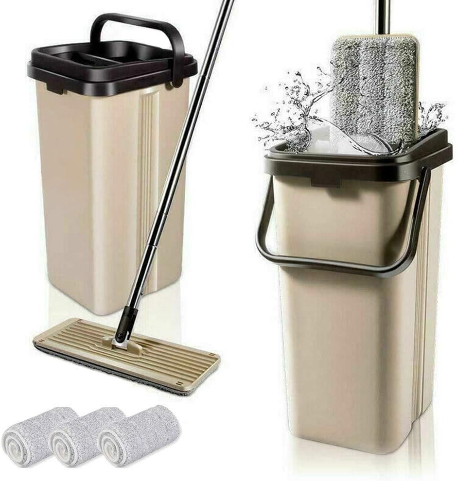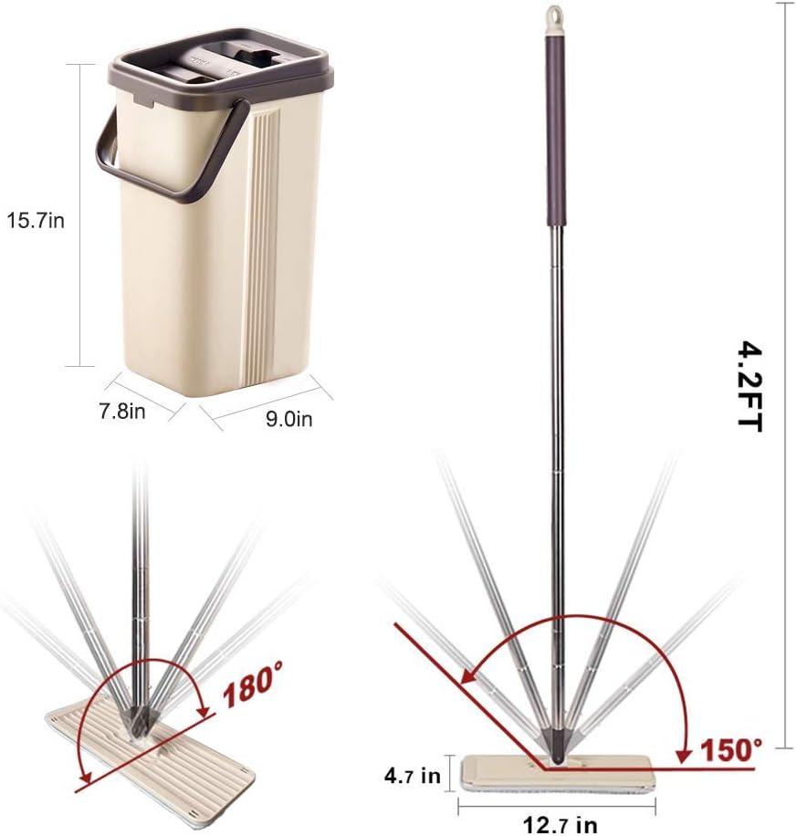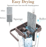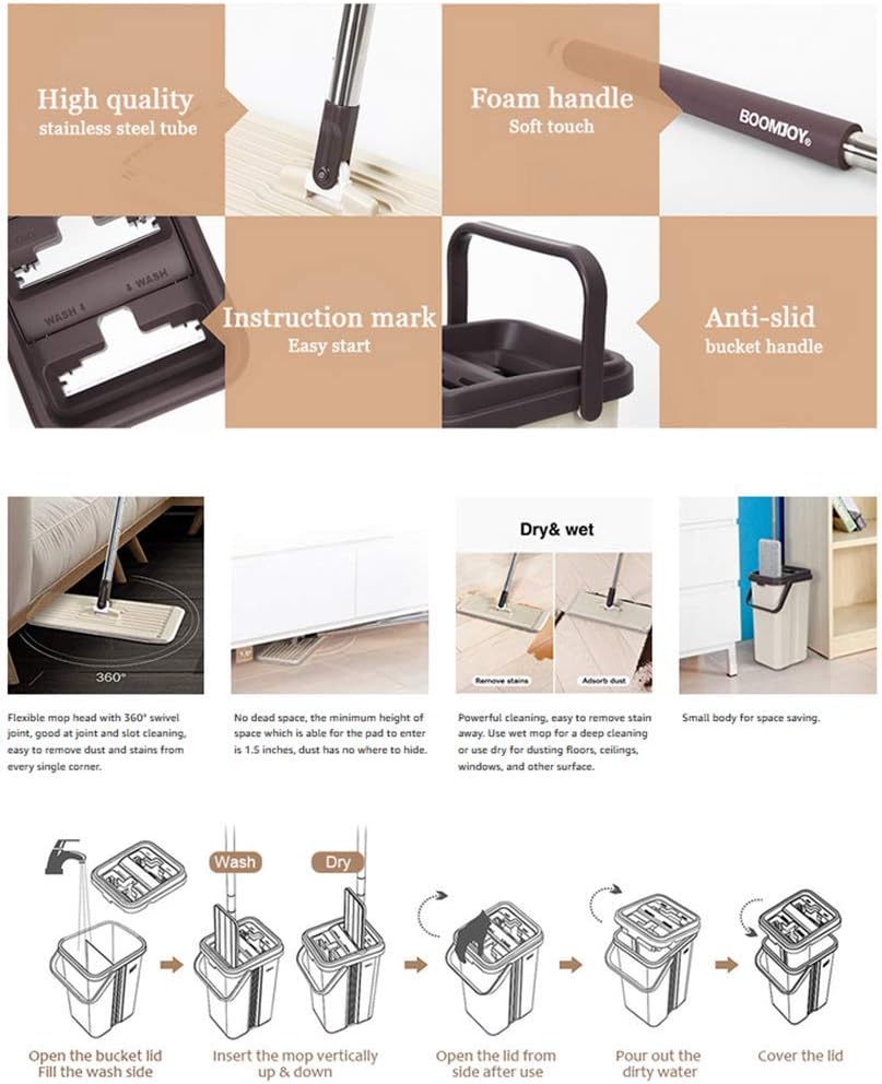 BOOMJOY F11 Microfiber Flat Mop with Bucket, Cleaning Squeeze Hand Free Floor Mop, Stainless Steel Handle with 3 Reusable Mop Pads