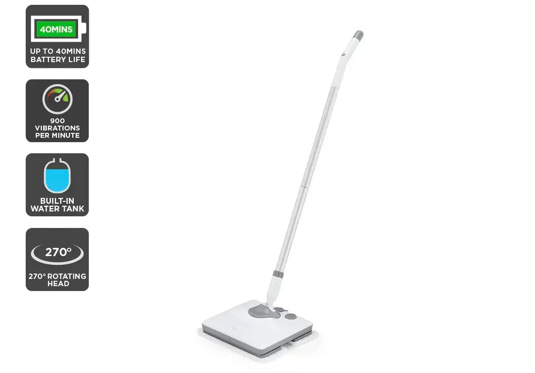 Easily mop up accidental spills, wipe floorboards of built-up dust and give marble floors a sparkling finish with this lightweight and cordless vibration electric mop that takes the hard work out of cleaning.