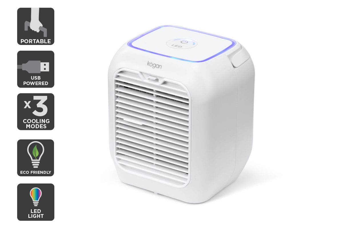 Cool, humidify and purify the air in your home or office with just a USB port, a splash of water and a touch of colour with the Kogan DC Motor Mini LED Air Cooler.