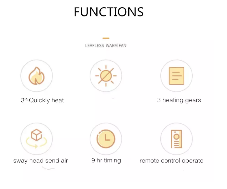 13. Maximised Safety: A. Overheat system will Automatically shut off the oscillating electric heater fan when the inner parts overheat. B. TIP-OVER SWITCH will shut off the unit when tipped forward or backward.