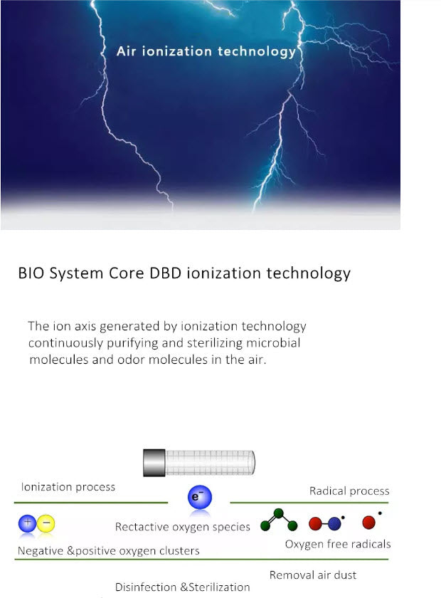 14..Air Pure +Anti-viurs : H11 filter net +activated carbon filter combo &Ionization tube is installed inside of fan . Pure: H11 &activated carbon compound filter can effectively block > 0.2mm fiber particles. Blocking rate is > 98%. For example hair、dust and other particles. It can help to absorb harmful gases such as formaldehyde and toluene. Anti-viurs: It configuration of the German green technology DBD -Ionization technology : Plasma generator go through the high electric voltage release poisitive and negative ions. but here Negative ions qty is 1.5times than Positive. then positive and negative charges a big qty of plasma to remove the virus in the air, Meanwhile the remain Negative ions can purifier the air, effective to resistance 98% harmful cell in the air like particles such as dust pollen, bugs, fine dust, soot, floc , PM2.5 particles &formaldehyde , TOV, benzene,Hcov-229E remove etc .