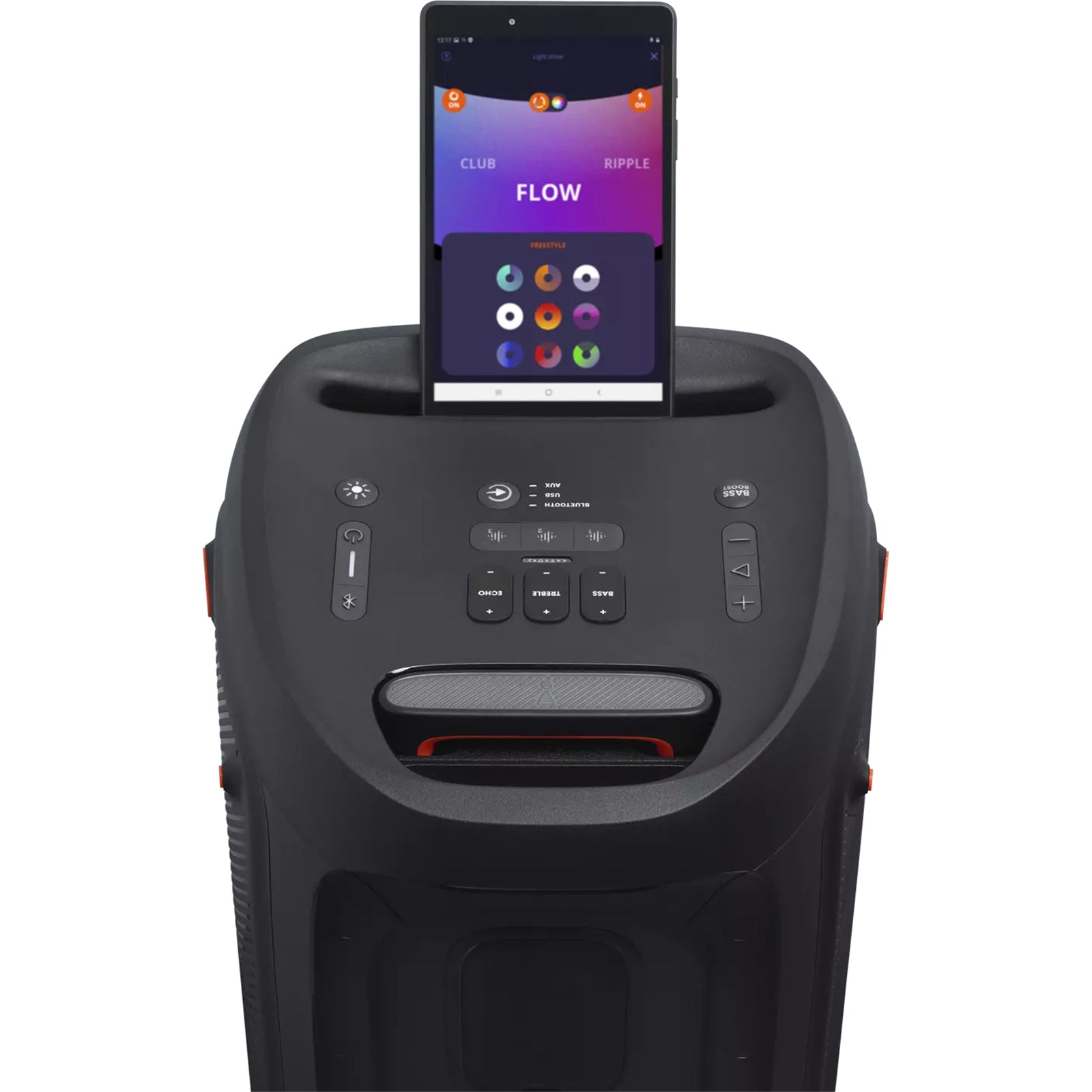 • It's all in the app - From the DJ booth to the chill-out area under the trees, control your party from your phone with the PartyBox app. Switch tracks, change up the light show, control karaoke features and more, all with a just a few taps and swipes.