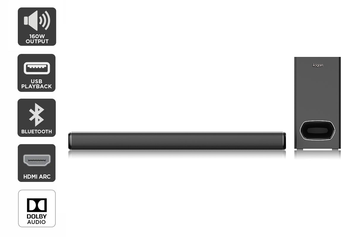 Kogan 2.1Ch 160W Dolby Soundbar with Wireless Subwoofer
