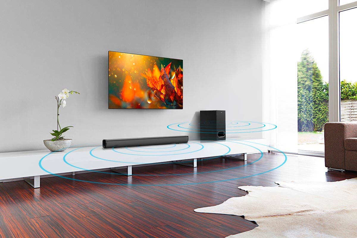 - 160W Soundbar with 2.1CH audio output and wireless subwoofer