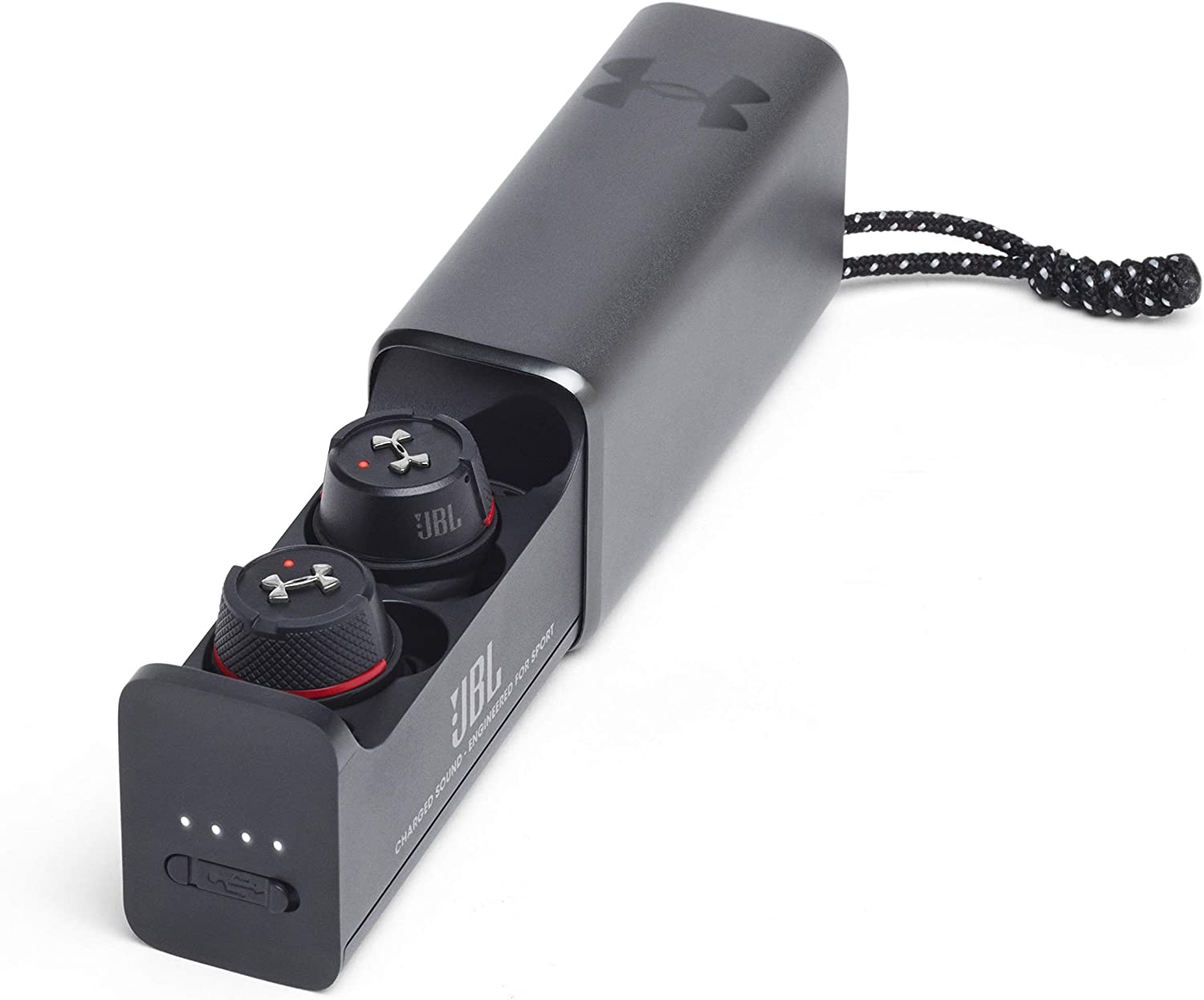 Original JBL UA FLASH TWS In-Ear Bluetooth V4.2 Earphone Sport Waterproof Earbuds with Charge Box and Mic Brand Name: JBL Vocalism Principle: Dynamic Control Button: Yes Active Noise-Cancellation: No Communication: Wireless Volume Control: No Sensitivity: 95dBdB Is wireless: Yes Support APP: No Function: For Mobile Phone Function: HiFi Headphone Function: Sport Connectors: None Support Memory Card: No Resistance: 14ΩΩ Waterproof: Yes With Microphone: No