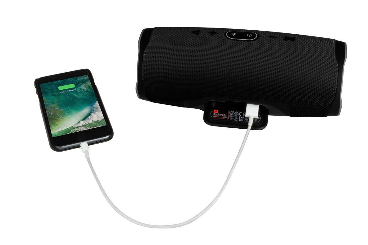 The JBL Charge 4 is perfect for any adventure or occasion, rated IPX7 waterproof so you can enjoy your music without worrying about splashes or accidental submersion under water. Durable fabric encases the unit along with rugged rubber to ensure your speaker can withstand knocks and bumps.