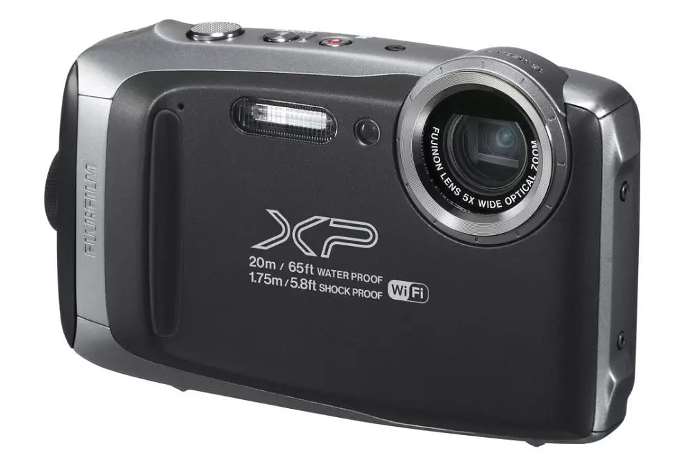 he Fujifilm FinePix XP130 is a rugged camera that can go up to 20 metres (65 ft) underwater, fall from 1.75 meters (5.7 feet) and function in temperatures as low as -10C (+14F). It has a 16MP BSI-CMOS sensor paired with a 28-140mm F3.9-4.9 lens and a 3" LCD with a new electronic level function. Photos can be shared via Wi-Fi, with Bluetooth for easy pairing and image transfer. The XP130 can capture 1080/60p video, take 360 degree panoramas and produce still and video time-lapses.