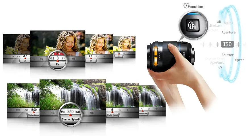 Taking professional-quality pictures is now as easy as smiling for one. The intuitive i-Function lens gives you quick and easy, one-touch access to all your camera’s manual settings. Adjust shutter speed, aperture and more with just a twist of the lens while previewing the image in real-time. Now you can see how your settings affect the shot before you take it. Whether you’re an enthusiast or an expert, the convenient i-Function lens truly revolves around your photographic needs.