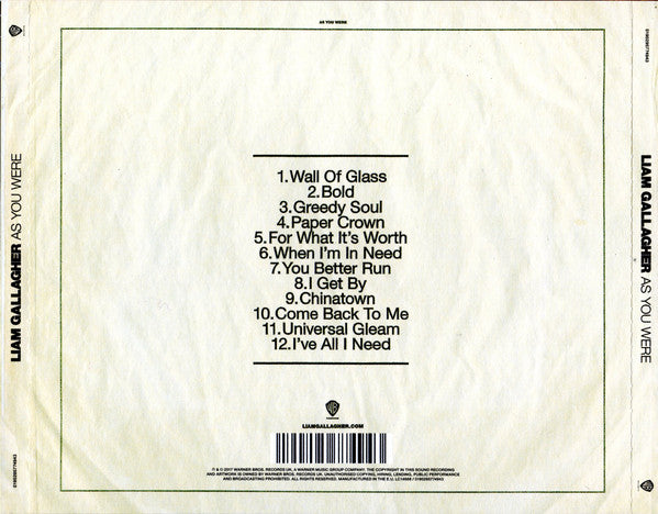1 Wall Of Glass 3:442 Bold 4:003 Greedy Soul 3:354 Paper Crown 3:295 For What It's Worth 4:126 When I'm In Need 4:197 You Better Run 3:248 I Get By 3:109 Chinatown 3:2110 Come Back To Me 3:2211 Universal Gleam 4:0812 I've All I Need 4:10