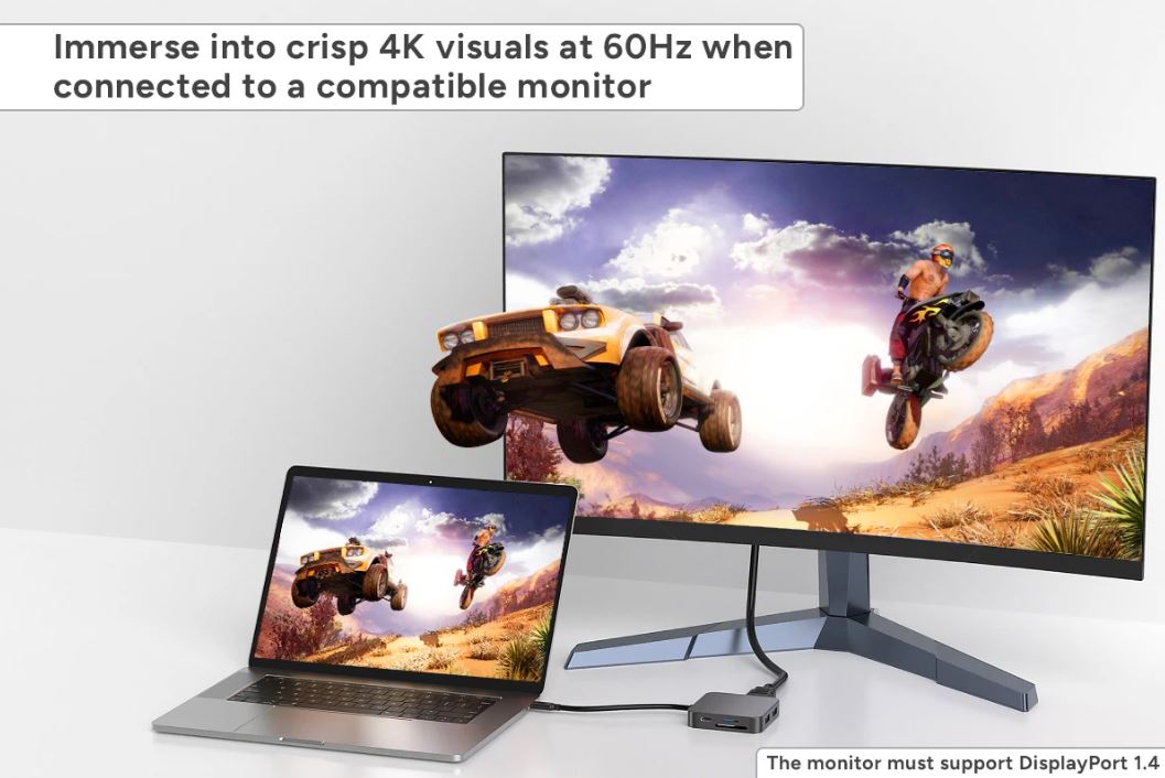 Enjoy stunning 4K visuals at 60Hz with the HDMI port, perfect for business conferences, presentations or gaming. With this feature, you can effortlessly mirror or extend your displays and stream videos to monitors or projectors in crystal-clear clarity and lifelike detail – elevating your viewing experience like never before!