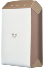 The gold Fujifilm instax SHARE Smartphone Printer SP-2 allows you to print photos shot with a smartphone or tablet using Fujifilm's free downloadable instax SHARE app for Android and iOS. Each print measures 2.4 x 1.8" with up to 320 dpi resolution and prints in approximately 10 seconds. A reprint button lets you make additional copies. Choose from several templates and filters, and upload your images to social networking sites. The SP-2's battery (not included) recharges in approximately 90 minutes.