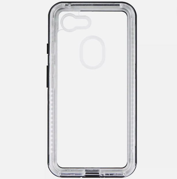 From Lifeproof brand name cases, The NEXT Series Hardshell Phone Case for Google Pixel 3 smartphones. Clear transparent finish with black border.