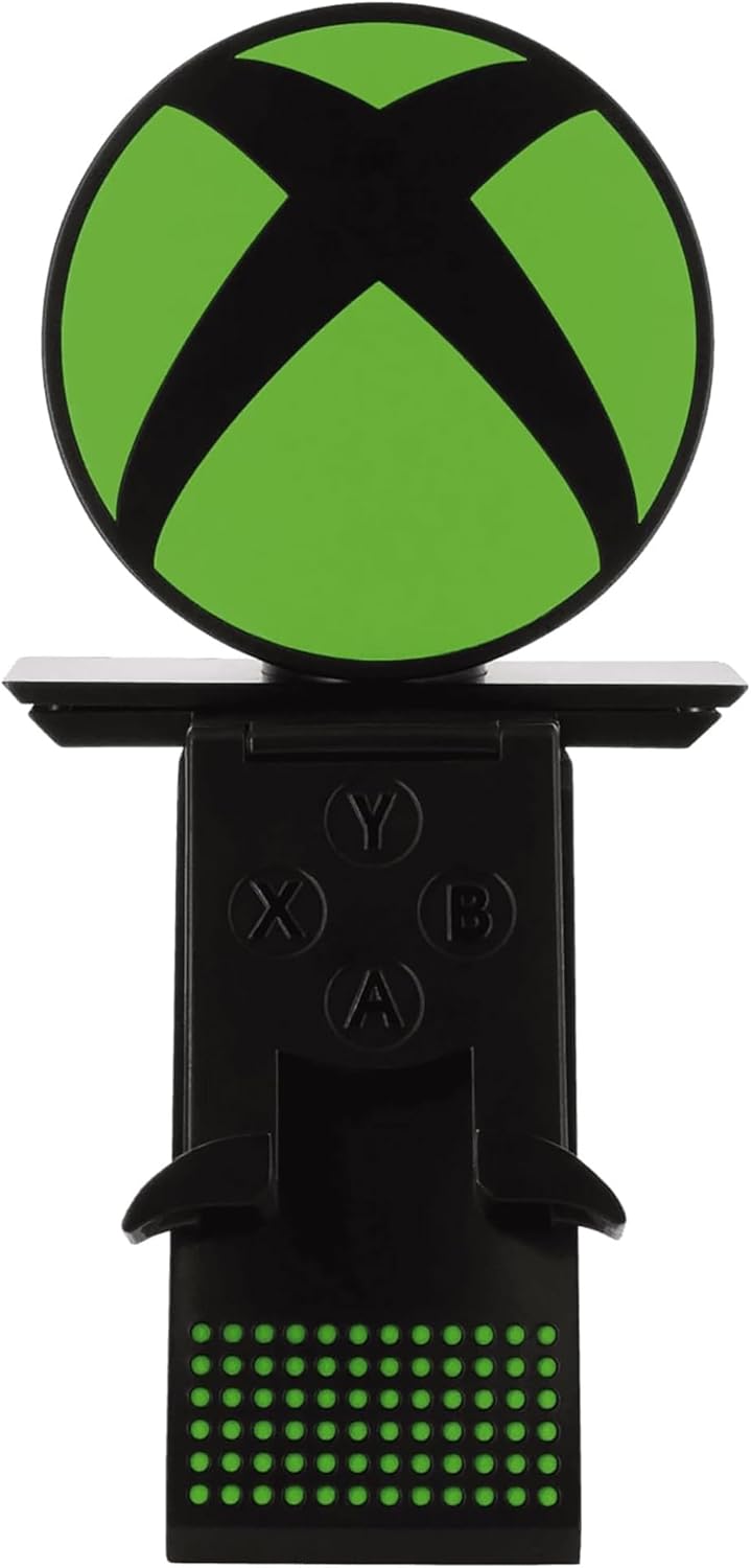 LIGHTS UP: Elevate your gaming setup with the Xbox Light Up Ikon Stand. This sleek black and green stand pays homage to the classic Xbox symbol. Featuring illuminated symbol atop the stand.