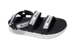 An archive-inspired the Ellesse Men’s Denso Text AM Sandals with jacquard webbing wrapping around the foot.
