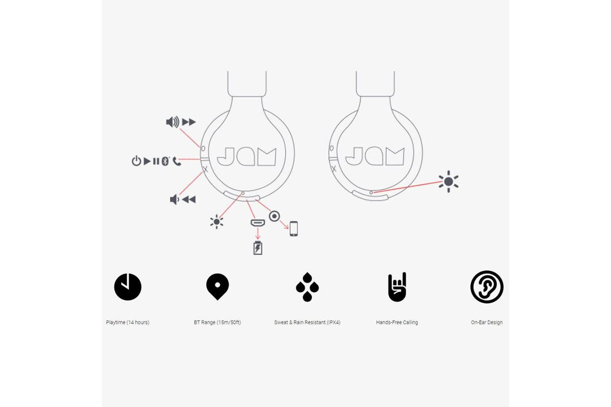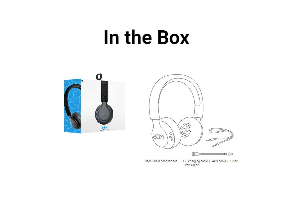 Jam Been There Bluetooth Headphones – Black is perfect for your all-day listening. With its 14 hours of playtime, don’t worry about having to recharge between your 9-5. Constructed from sweat resistant materials for your gym time. Answer your phone without disconnecting the earphones. Been There headphones know when a call is coming and will pause the music before ringing. When you hang up, the music will start where the track left off. If you’re making a call, just start dial from your phone and Been There does its hands-free thing. Features: Sweat & Rain Resistant (IPX4) Hands-free Calling Up to 14 Hours Playtime Wireless Bluetooth Up to 15m AUX-In Port Includes: Headphones USB Charging Cable AUX Cable Quick Start Guide Colour: Black Weight: 0.30kg Driver Unit: 40mm Frequency Response: 20-15,000Hz Bluetooth Range: 15m Dimensions: 18.28cm(W) x 7.28cm(D) x 17.27cm(H)