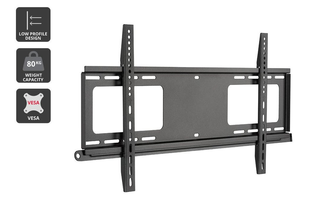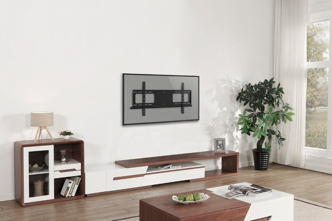 This Kogan wall mount is designed for 43” – 90” TVs. It is only 24mm thick, making it almost unnoticeable, and it is made of heavy-duty steel for added durability. This mount also has an open architecture for ventilation and easy access to wires and ports. It comes with an anti-theft locking bar with a padlock hole for extra security.