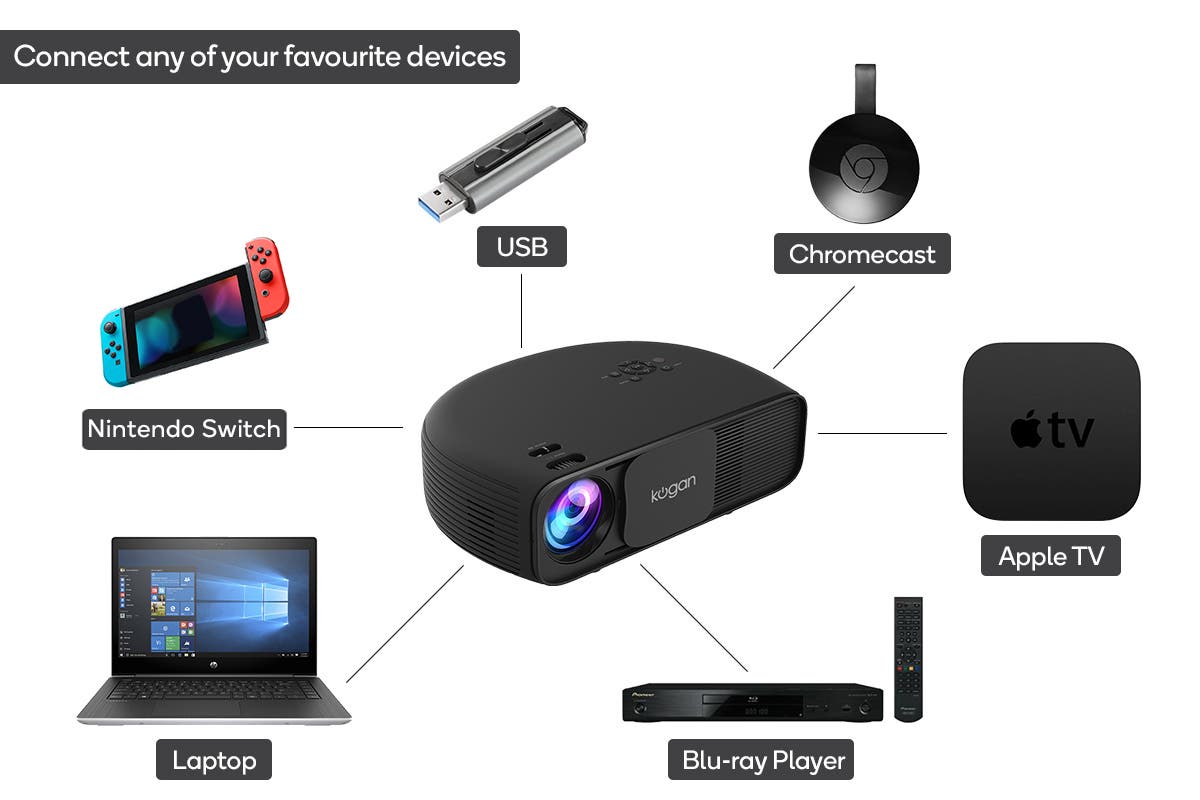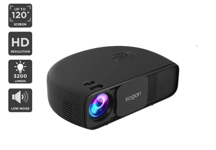 Considering a projector but hesitant about the cost and size? The Kogan 3200 Lumens HD Projector offers a compact, fantastic value solution which doesn’t compromise on quality. Bigger, brighter images The 3200 lumens of brightness recreates images in super-vivid detail without overexposure while the HD capabilities mean that Blu-ray and gaming content will stay sharp, even up to 120”. Lightweight and easy to transport Weighing only 2.2kg, you can easily transport this projector for movie night at a friend’s place, or take it from office to office when making presentations. The lightweight design also means that you can mount it more easily and securely without worrying about instability or damage to walls and ceilings. Otherwise, just set it on a tabletop for a great picture without the fuss. Connect all your favourite devices With a multimedia interface, this HD projector connects with all your favourite devices, like notebooks, USBs, mini PCs and computer sticks, Nintendo Switch and even Google Chromecast 2!