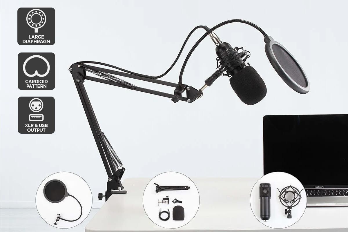 - Kogan USB Condenser Microphone with Pop Filter and Stand