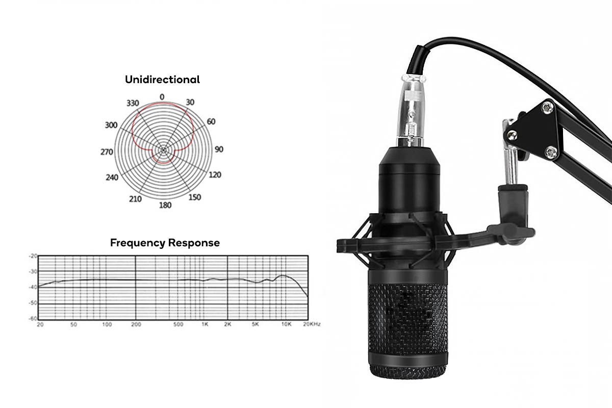 - Double-layer nylon mesh pop filter with 360° flexible neck eliminates popping