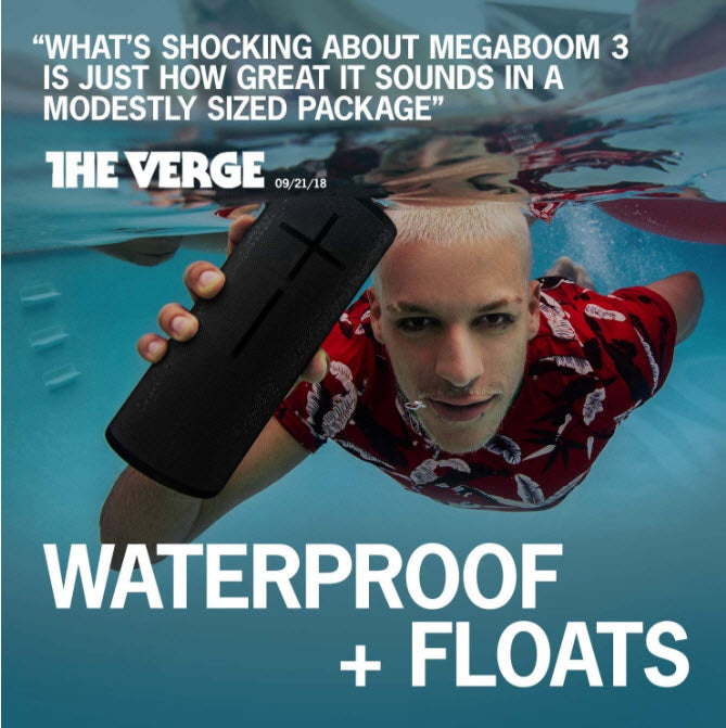 Ultimate Ears BOOM 3 is a super-portable wireless speaker built for adventure. It rocks immersive 360° sound with deep bass, all carefully balanced so you can hear every note. But BOOM 3 also hangs tough. It’s seriously waterproof, dustproof, and drop proof which means you can bring vibes anywhere. From the desert festival to the pool party and everywhere in between. Plus BOOM 3 features the all-new Magic Button so you can play, pause and skip songs directly on the speaker. And it is wrapped in a stunning, high-performance fabric that shimmers. The ultimate go-anywhere speaker just got more ultimate.
