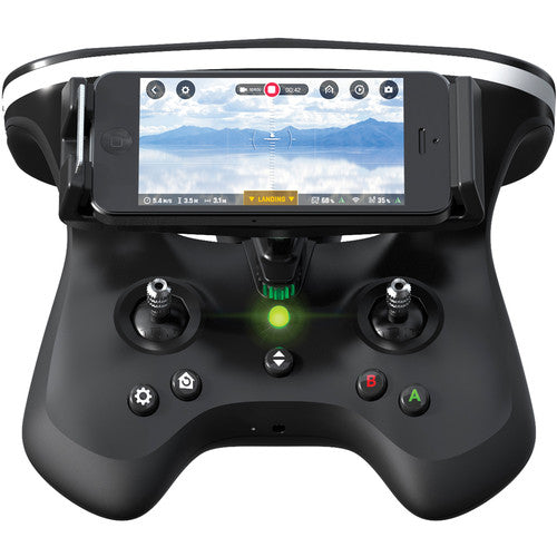 If your phone is inside the FPV headset, you might ask: "How do you control the drone?" Also included with the bundle is Parrot's Skycontroller 2. Modeled after video game controllers, the Skycontroller 2 is intuitive to operate with its precise joysticks, amplified Wi-Fi connectivity for extended range, and smartphone/tablet holder.
