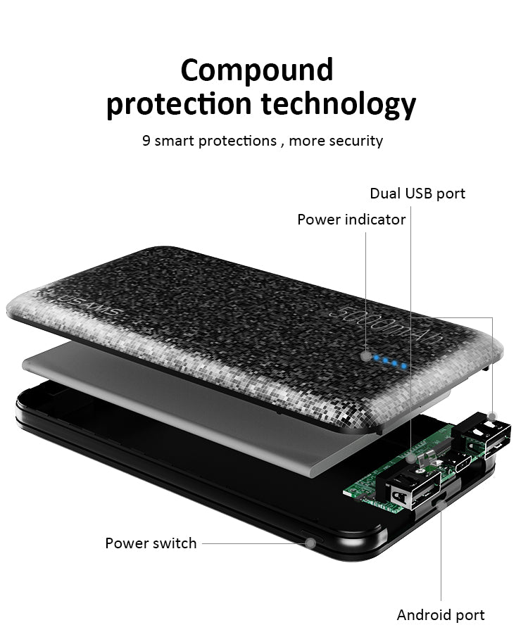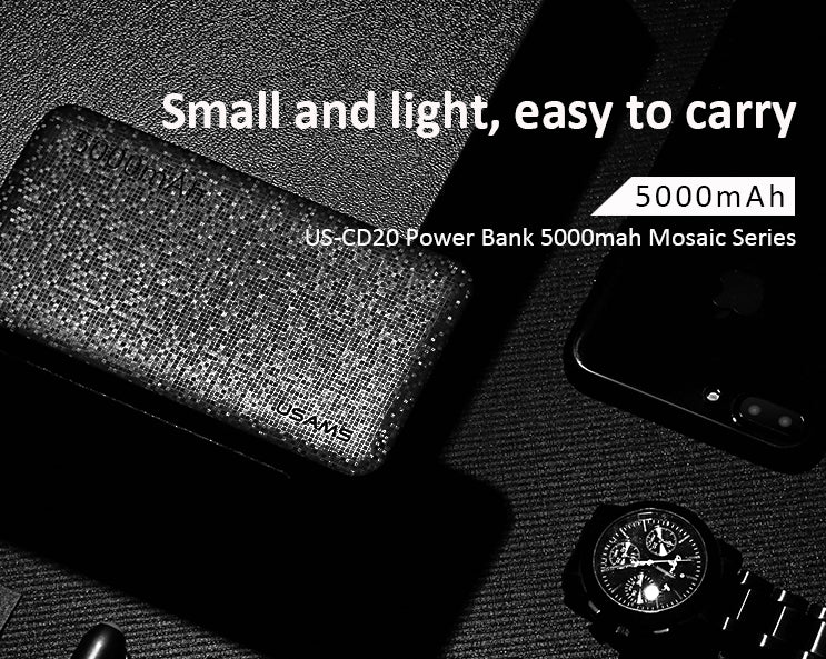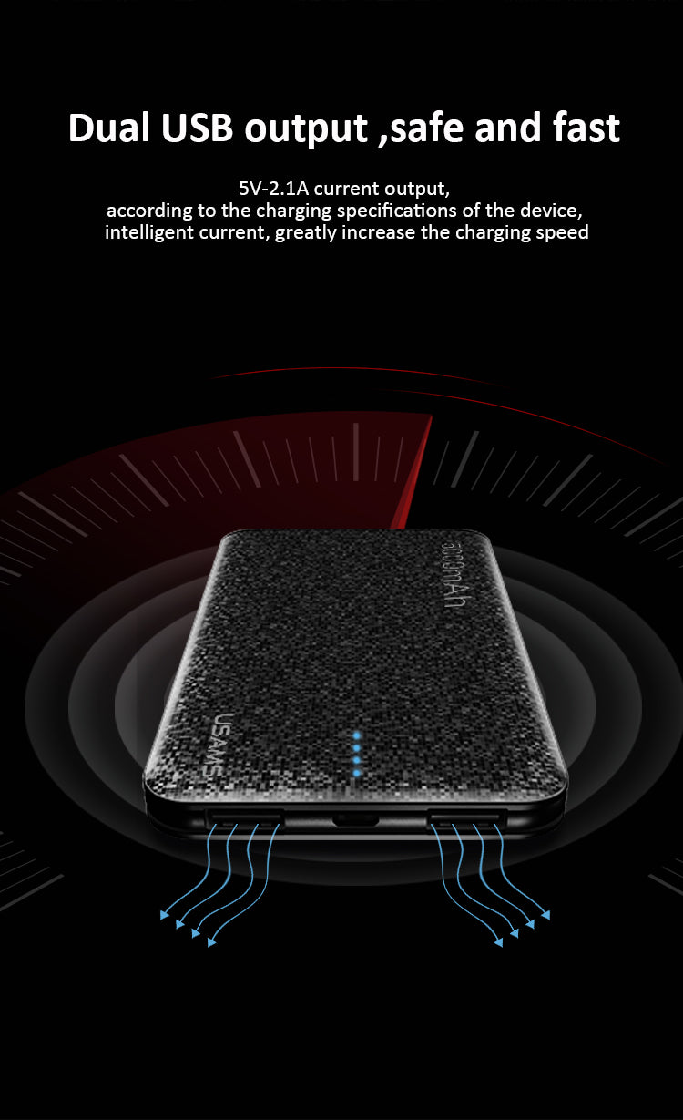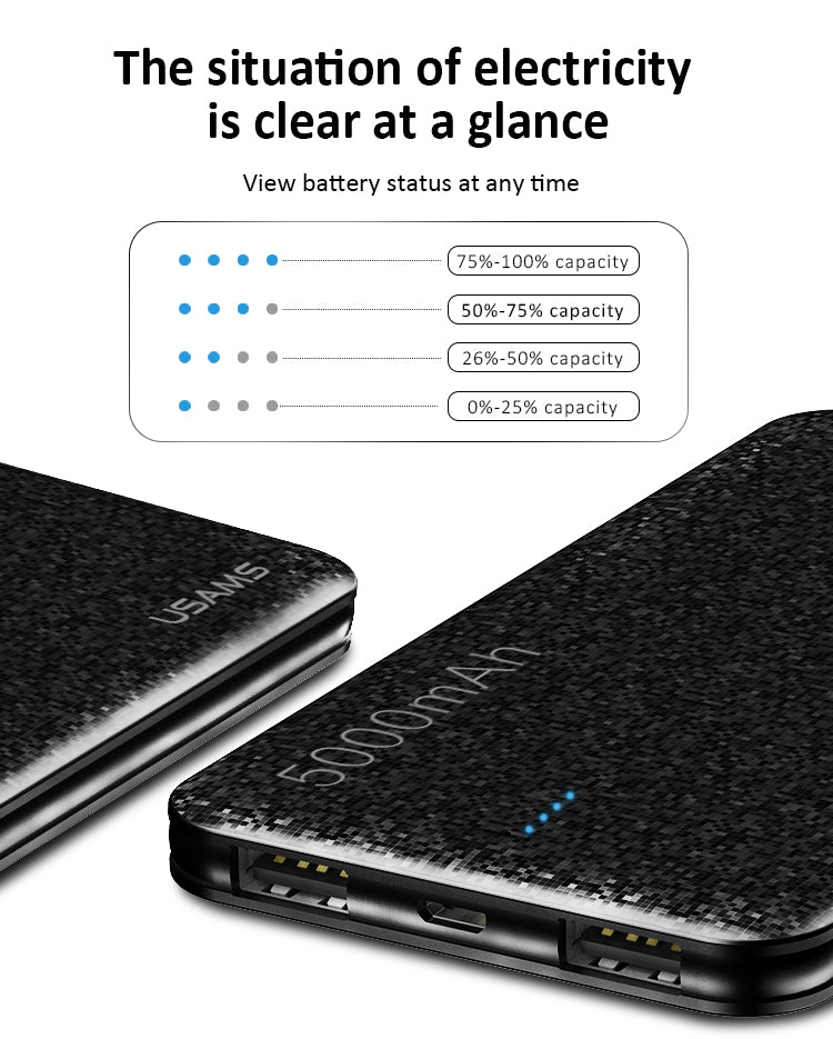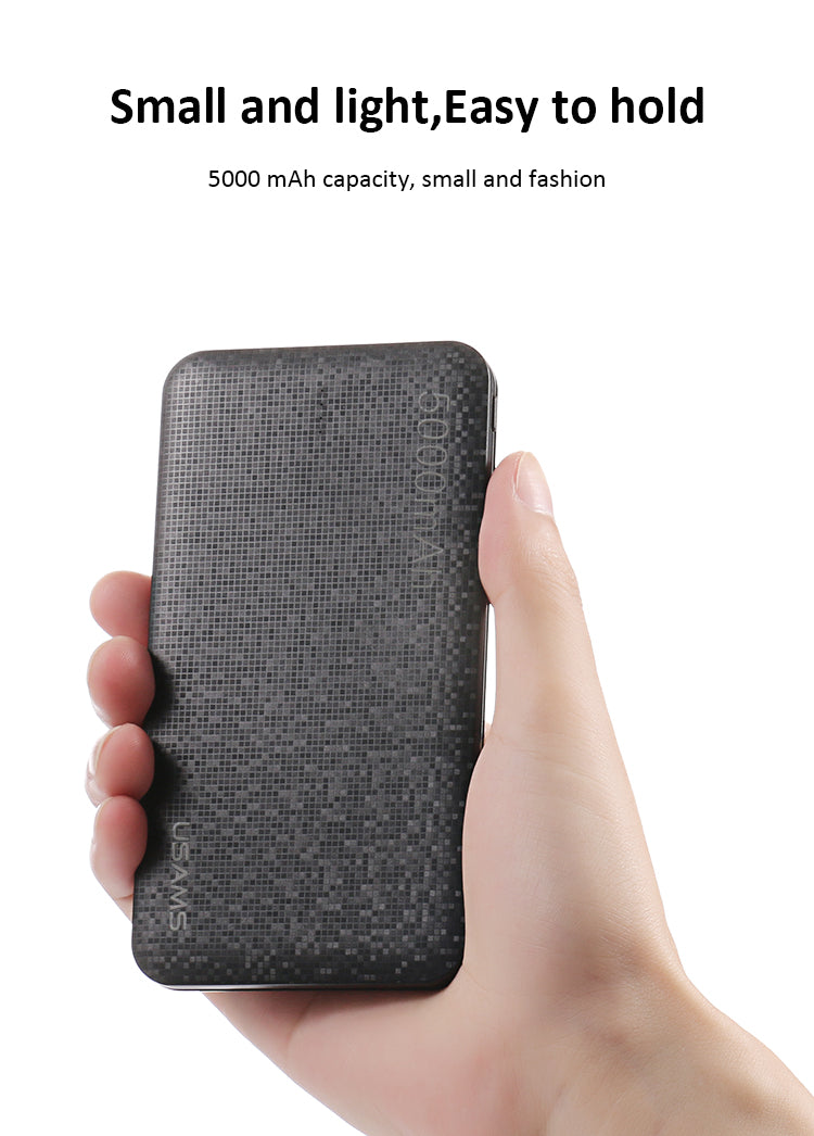 USAMS 5000mah Power Bank Mini External Battery Powerbank Ultra-thin fast charging pover bank for iPhone Samsung Huawei Xiaomi LG
