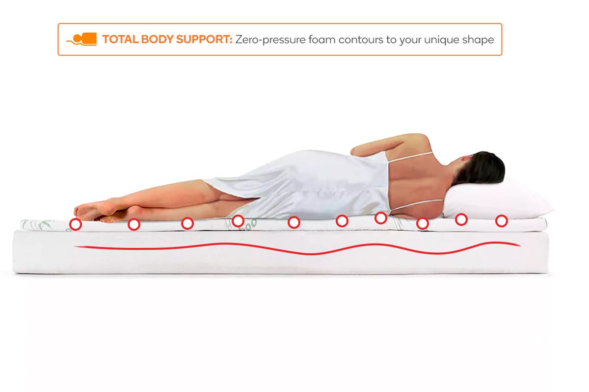 It gently cradles your body, taking pressure off your shoulders and hips to give your spine the best chance to align correctly while you sleep.
