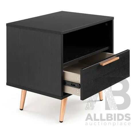 Shangri-La Bedside Table - Vienna Collection (Black/Gold) - ORP $119.95