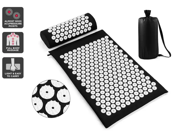 Designed to replicate an acupressure massage, this mat and pillow contains thousands of acupressure points that may stimulate the nervous system and the body’s pressure points.
