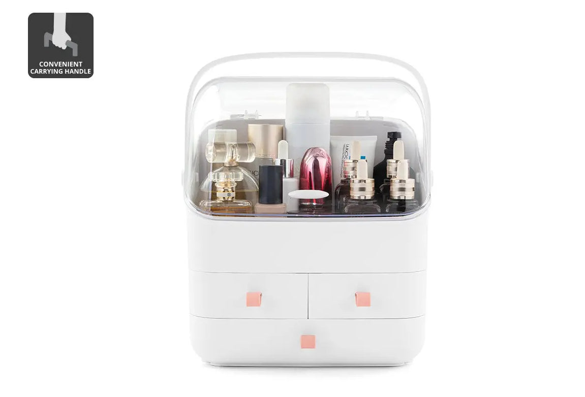 If you’re constantly searching for your favourite lipstick or can never find your eyeliner pencil, this organisers storage box is for you! This makeup organiser storage box provides plenty of storage for everything from foundation to lipstick to brushes. It has a large storage case, a tall top compartment, and three pull-out drawers, as well as a transparent protective cover and a carry handle for portability.