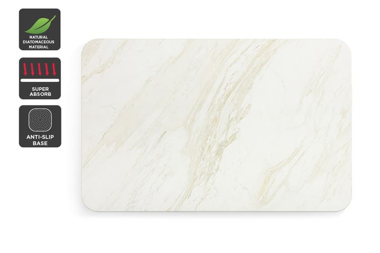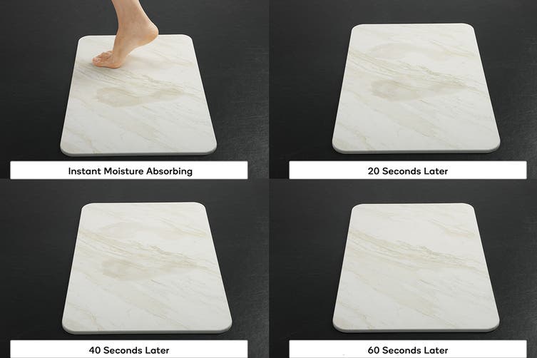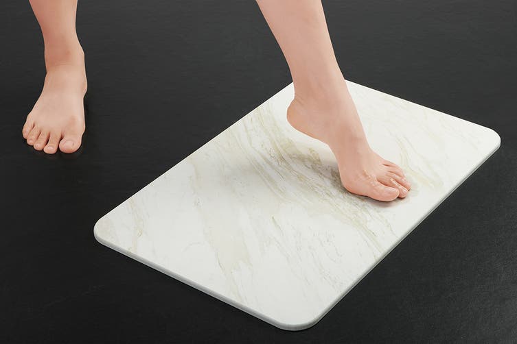 Made from an eco-friendly diatomaceous material, this mat immediately absorbs water off your feet, with watermarks disappearing within seconds!