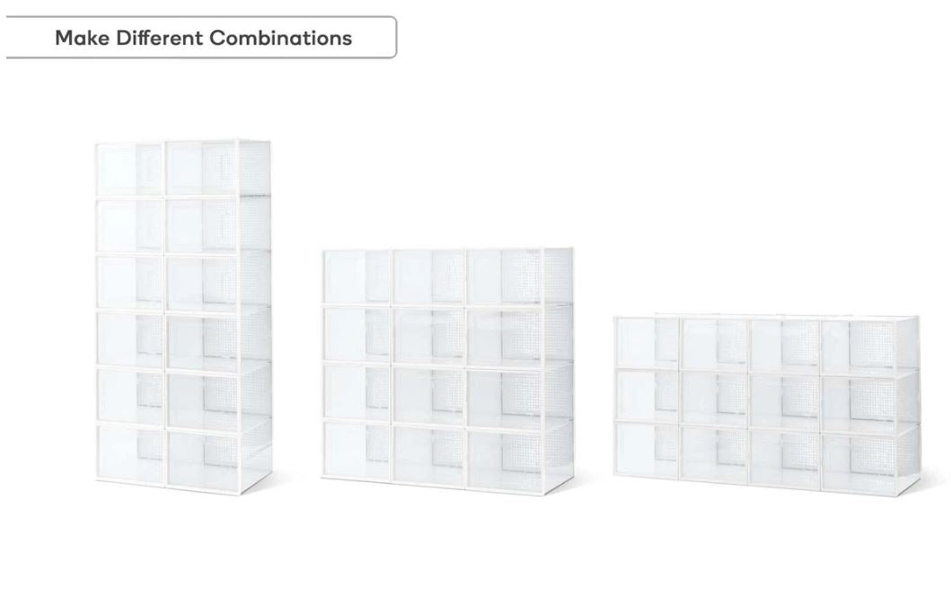 This set is white with clear doors, designed for sneakers, sandals, and dress shoes. It’s ideal for keeping entryways or wardrobes tidy while showcasing footwear neatly.