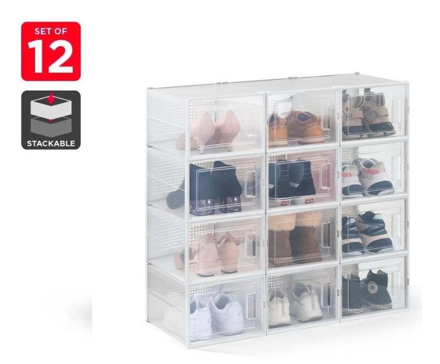 Ovela Shoe Storage Display Box Front Drop (Set of 12, model OVSSTDBF6WA