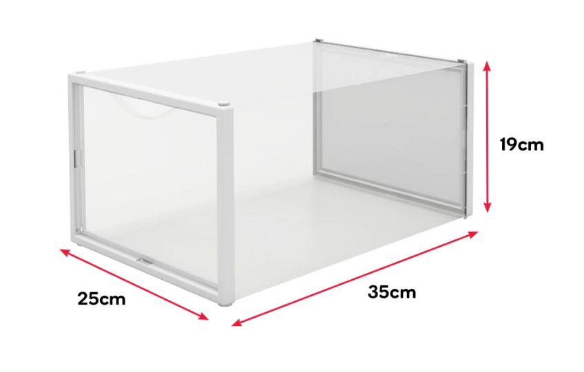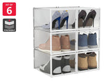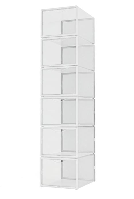 This shoe storage display box set helps keep your shoe collection organized and neatly stored in individual capsules. It holds up to 6 pairs of shoes and has a ventilated design for preserving the shoes. The box is stackable and collapsible for space-saving storage. It is made of high-quality, clear ABS material and is easy to clean.