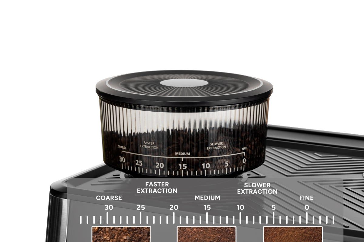 - 30 Adjustable grinding sizes*. Tailor your coffee strength and texture.