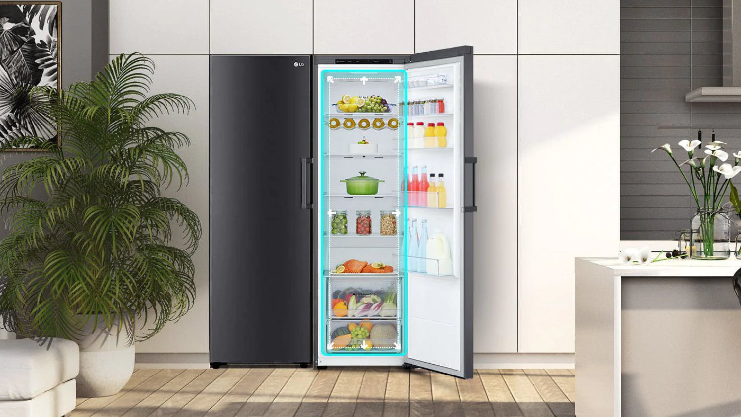 With the LG 386L Single Door Right Hand Fridge, you can keep your groceries fresh and crisp for longer! It features a Door Cooling function, a moist balance crisper, and a set of handy organisers to accommodate your food storage needs. In addition, this unit boasts a generous capacity, giving you enough space to store various food items such as meats, produce, frozen goods, and more.