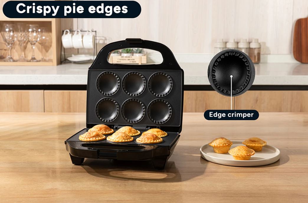 With the capacity to cook 6 pies simultaneously, this mini pie maker is ideal for preparing bulk treats faster than traditional baking methods. Whether you’re hosting a party or needing a quick family dinner solution, it lets you produce multiple servings in one go, saving you time and effort. The ease of use means that you can enjoy homemade pies without the fuss, making it a favourite appliance in any kitchen.