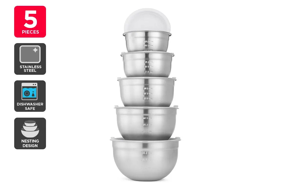 Ovela 5 Piece Stainless Steel Mixing Bowls with Airtight Lids
