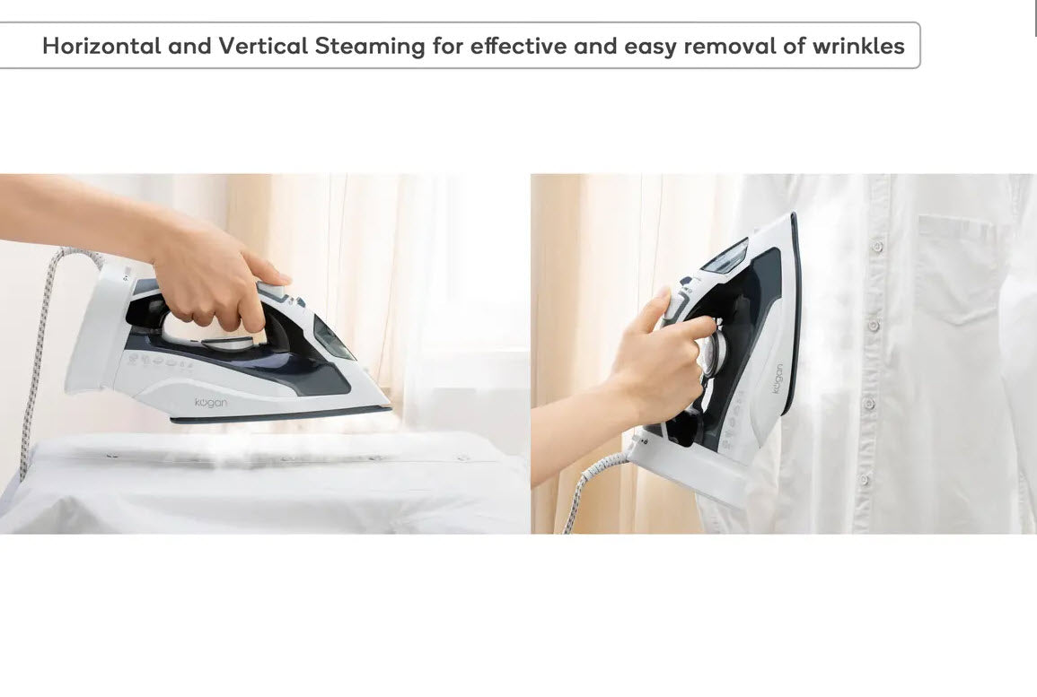 Experience 2-in-1 ironing flexibility with the multifunction Kogan 2400W Cordless Steam Iron, fit with multiple ironing modes and an anti-calcium system, you can smooth out every crease and have fresh ready-to-wear clothes in no time.