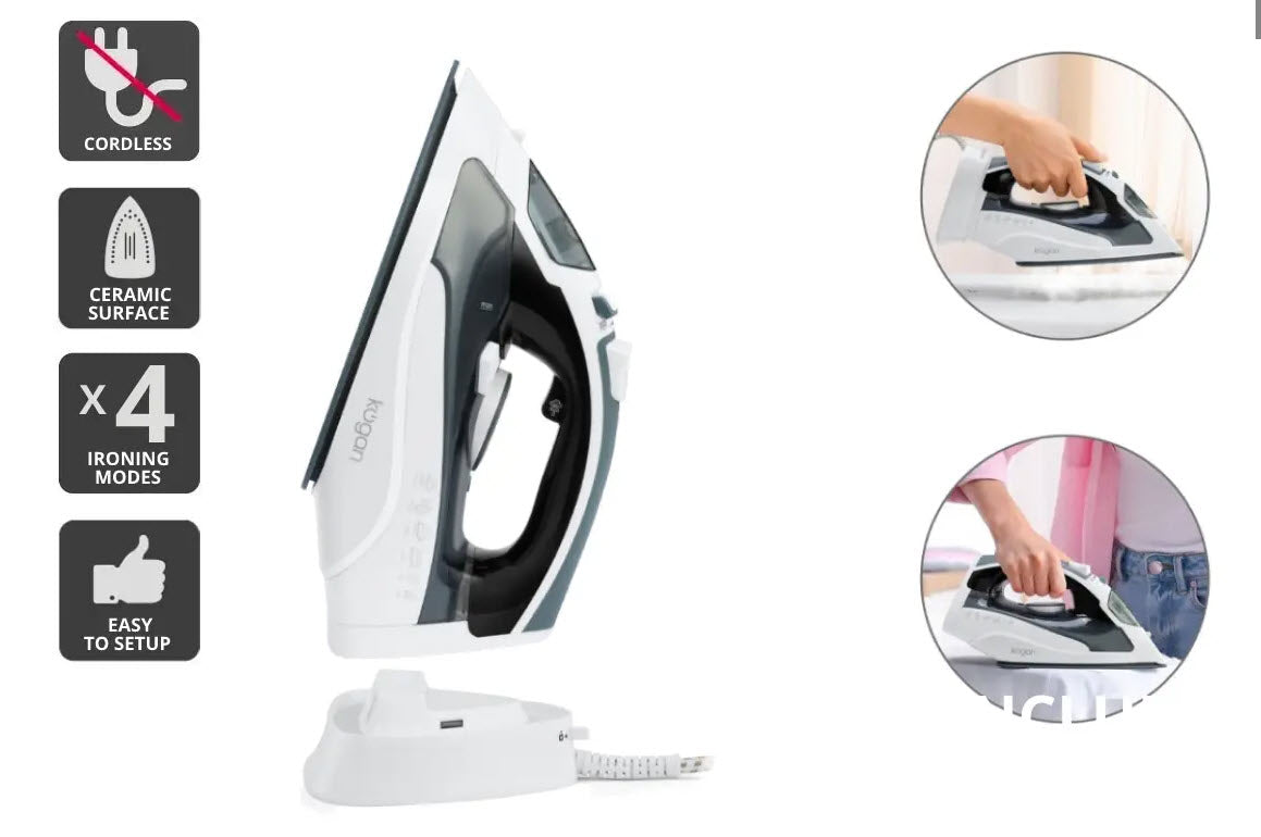 Power up to 2400W and smooth out difficult creases with a faster heat time and without the hassle of cords thanks to the Kogan DuoGlide Cordless and Corded Steam Iron.