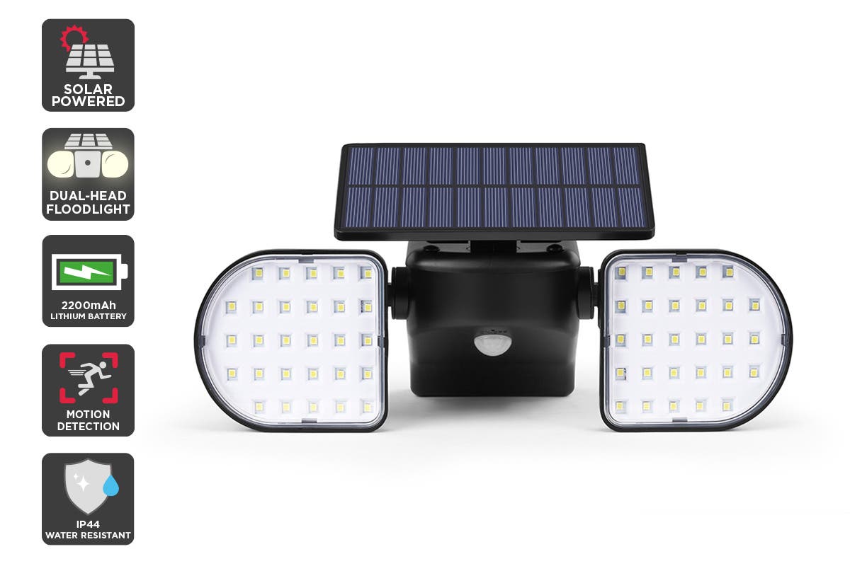 Solar Powered Motion Sensor Dual Head LED Flood Light (2000mAh)