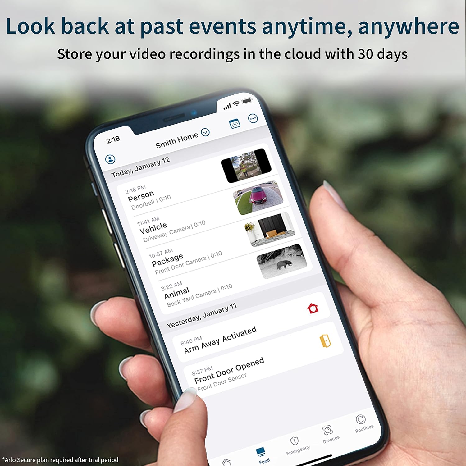 - Smarter alerts, quicker action - With an Arlo Secure plan, receive smarter notifications for people, vehicles, packages, and animals so you can react quickly, right from your phone’s lock screen.