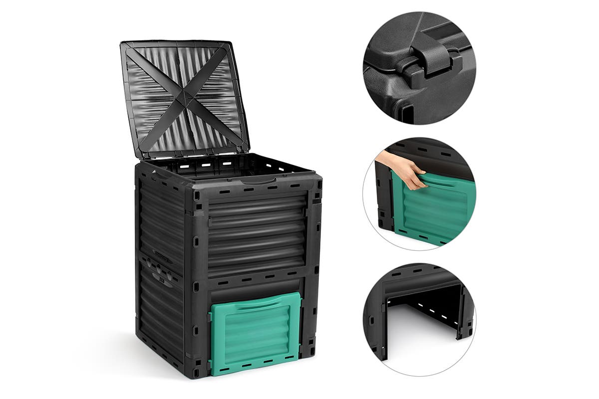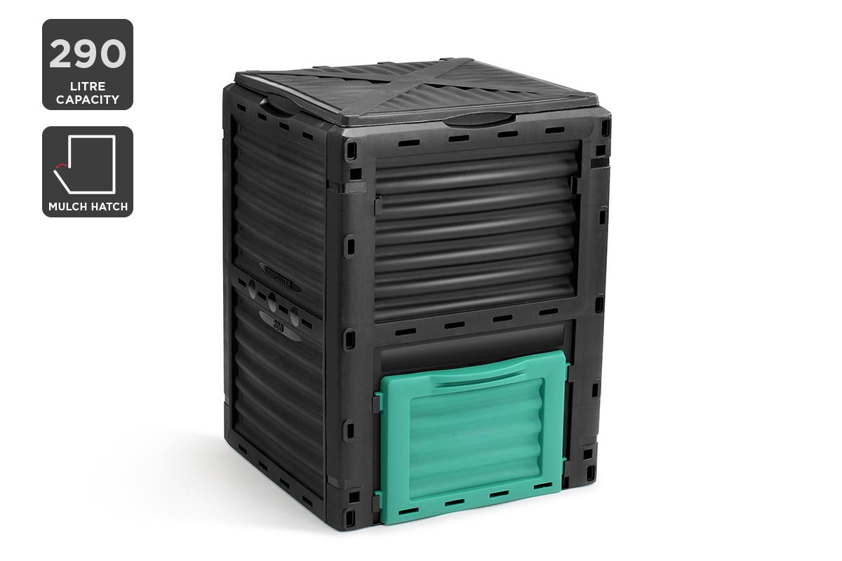 Made to handle everything a green thumb can throw at it, this aerated compost bin is made tough from high-impact, 90% recycled plastic resin with a 290L capacity to easily handle garden clippings and lawn trimmings, outside of regular kitchen waste.