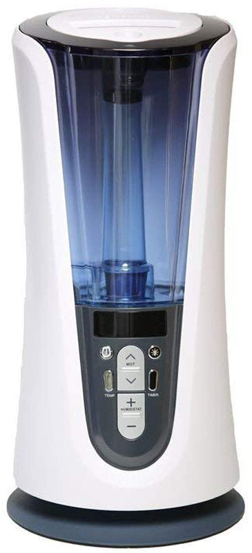 LCD digital readout displays room humidity level, programmed humidity target, timer setting, mist intensity and mist temperature